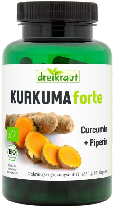 Die Kurkuma Forte Bio Kapseln von dreikraut sind ein auf den ersten Blick sehr günstiges in Deutschland produziertes Bio Präparat. Leider enthalten die Kapseln einen nicht weiter deklarierten Piperin-Anteil und der Hersteller veröffentlicht auch keine unabhängigen Laboranalysen. Zusätzlich sind in einer Kapsel zwar 365mg Kurkuma, jedoch nur 70mg des Wirkstoffs Curcumin, enthalten. Damit ist das Präparat in sinnvoller Tagesdosis nicht mehr sonderlich preiswert.